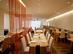 The unique decor of this popular cafe-restaurant emphasizes freshness and spring - you can sit on polished logs, watch clouds projected on the ceilings of the two storey establishment, and listen to birdsong. The menu is similarly fresh - a selection of classic Russian dishes made with top quality ingredients, and each given an expert contemporary twist. Prices are reasonable, and there is also an extensive Sushi menu.