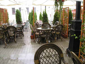 Restaurant in Moscow serving European cuisine, with live music in the evenings.
